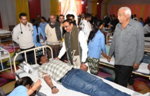 श्रीमती ममता तिमोरे भी शिविर का अवलोकन पहुंचे। सिविल सर्जन आर.एस.जयंत, डॉ. आर के विदुआ, जिला ब्लड बैंक प्रभारी डा महेश जैन, डॉ. रवि पाटीदार, डॉ. कृष्णदीप साहू, वीऐम ओ खुरई डॉ. राम ठाकुर, पैथालाजिस्ट खुरई डॉ. शेखर श्रीवास्तव के नेतृत्व में प्रशिक्षित स्वास्थ्य टीम पूरे समय सक्रिय रही। रक्तदाताओं को पूरक पोषण पेय व भोजन की सुविधा उपलब्ध रही। रुद्राक्ष धाम मंदिर प्रांगण में खुशी चापा, गौरी दुबे, सोनाली ठाकुर, शीतल अहिरवार, रितिका ठाकुर, योगिता जैन, वैशाली कौशल, जया पवार, सविता व्यास, मंदाकना दुबे, सुधा ईसाई, विशाखा पवार, मेघा कुशवाहा सहित कई बहिनों ने रक्तदान किया।रक्तदान शिविर में जिला भाजपा अध्यक्ष श्याम तिवारी, डॉ. सुशील तिवारी, निगम अध्यक्ष वृंदावन अहिरवार, जिला क्षत्रिय महासभा के अध्यक्ष लखन सिंह, एम आई सी सदस्य शैलेंद्र ठाकुर, राजकुमार पटेल, सोमेश जड़िया, अनुराग प्यासी, संतोष दुबे, रिशांक तिवारी, संजीव बंटी श्रीवास्तव,लक्ष्मण सिंह, अजीत सिंह चीलपहाड़ी, पं राजू तिवारी, अंकित विश्वकर्मा, शुभम घोषी, प्रतीक चौकसे, उमेश यादव, जगन्नाथ गुरैया, संदीप साहू, प्रवीण पांडे, मोनू विश्वकर्मा, रंजन मोहंती, वीर चंद्र जैन, राजीव सोनी, देवेंद्र सिंह बुंदेला, राजकुमार अहिरवार गढ़ौली, कृष्णकांत अहिरवार, देवांशु सेन, अशोक अग्रवाल, कमल कुमार जैन, रमाकांत रिछारिया, प्रिंस यादव, अंश चौकसे, ब्रजेश मिश्रा महाराज खुरई, सतीष यादव, मनोज जैन, हितेंद्र जैन, शुभम सिंह, राजपाल राजपूत, अमित सोनी, शिवराज सिंह जैसीनगर, आकाश पांडे, तनिष्क पांडे, रौनक चौकसे, ओम चौकसे, मानस कटारे, विवेक स्वामी, आदित्य सिंह ठाकुर, नितिन श्रीवास्तव, मनोज ओझा, रंजन श्रीवास्तव, राजवीर सिंह ठाकुर, इंकास राय, नीलेश जैन बांदरी, अनिमेष ठाकुर, सोनू प्रताप सिंह, आकाश ठाकुर, आनंद मोहन घोषी, पर्व तिवारी, जय दुबे, एकांश दत्त, विवेक चढ़ार, यश यादव, शुभ सिंह, कार्तिक सिंह, विधान सिंह ,दीपक ठाकुर, भगत सिंह लोधी सहित सैकड़ों गणमान्य जन, युवा शक्ति उपस्थित रहे।