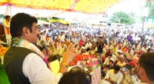 इसके बाद वे मधुवन गार्डन में प्रजापति समाज के कार्यक्रम में सम्मिलित हुए। उन्होंने संदीपनी स्कूल के पास 5 लाख 68 हजार रुपए की लागत से प्रजापति समाज के भवन का लोकार्पण किया। इस अवसर पर श्री राजपूत ने उत्तर प्रदेश से कार्यक्रम में सम्मिलित होने पधारे होमगार्ड एवं नागरिक सुरक्षा मंत्री धर्मविर प्रजापति का अभिनंदन किया साथ ही उन्होंने सभा को संबोधित करते हुए कहा कि समाज को आगे बढ़ाने के लिए सबसे बड़ा माध्यम शिक्षा है, प्रजापति समाज शिक्षा से लेकर किसी भी क्षेत्र में कम नहीं है। प्रजापति समाज के भाइयों के हाथों में वह कला है कि मिट्टी से भगवान की नयनाभिराम मूरत बना देते हैं। जिसके बाद दोपहर 3 बजे बस स्टैंड पर आयोजित सभा में उन्होंने जनता को संबोधित किया और क्षेत्र के विकास के लिए सरकार की योजनाओं की जानकारी दी। उन्होंने जिम सामग्री और सीसी सड़क निर्माण के लिए 25-25 लाख रुपए देने की घोषणा की। साथ ही उन्होंने बच्चों को कम फीस में उच्च स्तरीय शिक्षा देने के लिए 40 करोड़ की राशि से ऐसी स्कूल बनवाने की बात कही जहां हर सुविधा उपलब्ध कराई जाएगी। दूर दराज से आने वाले बच्चों के लिए बस सेवा मुहैया कराई जाएगी।