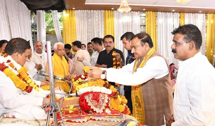 सागर। होटल राम सरोज पैलेस में चल रही श्रीमद् भागवत कथा के तीसरे दिन कथा श्रवण करने पहुंचे पूर्व गृह मंत्री वर्तमान विधायक भूपेंद्र सिंह ने कथा वाचक गोस्वामी श्री हित योगेंद्र वल्लभ आचार्य जी का शॉल श्रीफल भेंट कर व्यास पीठ से आशीर्वाद प्राप्त किया।