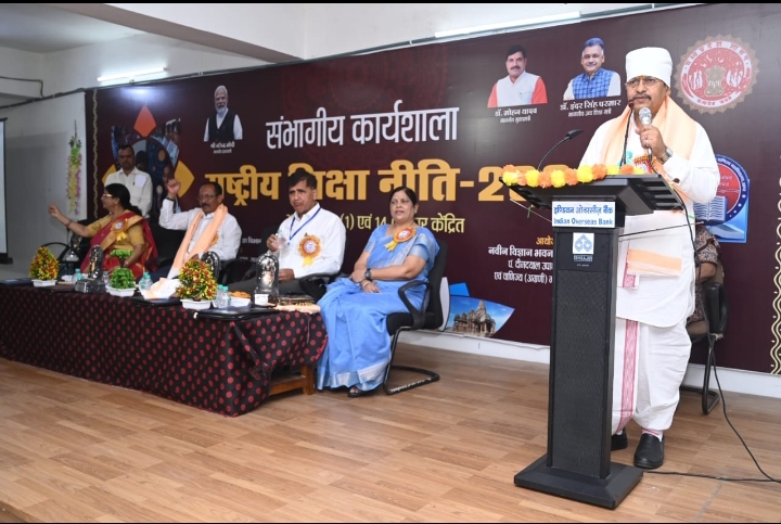 सागर । पं. दीनदयाल उपाध्याय शासकीय कला एवं वाणिज्य महाविद्यालय सागर में अतिरिक्त संचालक कार्यालय द्वारा राष्ट्रीय शिक्षा नीति पर सम्भागीय कार्यशाला का आयोजन किया गया। कार्यक्रम के मुख्य अतिथि विधायक शैलेन्द्र जैन ने कहा कि शिक्षकों की समाज में भूमिका वर्तमान समय में महत्वपूर्ण विषय है। राष्ट्रीय शिक्षा नीति में आधुनिक ज्ञान के विस्तार को भारतीय दृष्टिकोण से परिभाषित करने का कार्य किया जा रहा है।