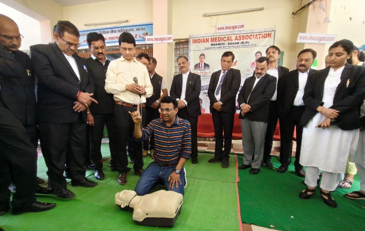 • आईएमए , आई एस ए और अधिवक्ता संघ सागर की संयुक्त पहल न्यायालय परिसर में सीपीआर का मेगा प्रशिक्षण कार्यक्रम आयोजित