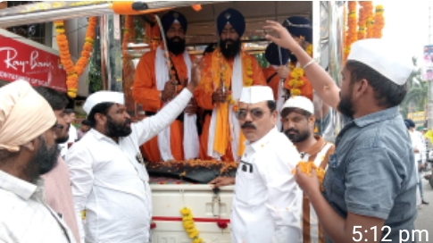 सेवादल अध्यक्ष सिंटू कटारे ने यात्रा में सम्मिलित पंच प्यारों को पुष्प माला पहनाकर आर्शीवाद लिया।सेवादल परिवार द्वारा यात्रा पर पुष्प वर्षा की गयी।